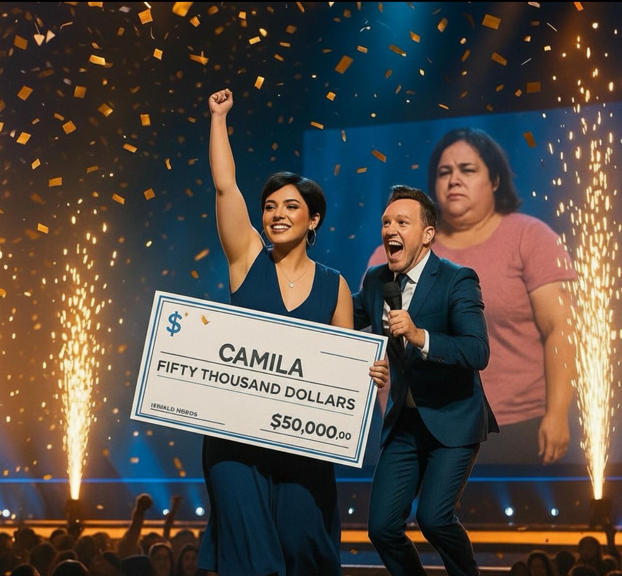 Atrás dela, no telão, a antiga Camila era exibida de forma quase cirúrgica. Uma imagem escolhida à dedo. Rosto cansado. Barriga marcada. Olhar apagado. A produção sabia exatamente onde apertar e como provocar o impacto emocional perfeito para quem assistia.
